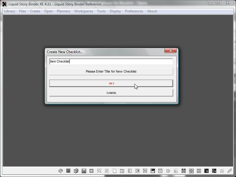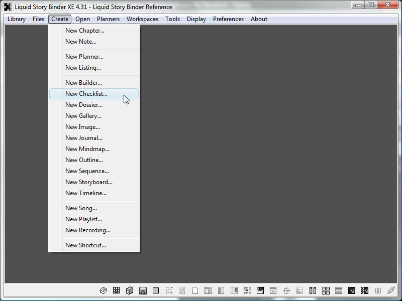 To create a new Checklist, choose 'New Checklist' from the main 'Create' menu.
