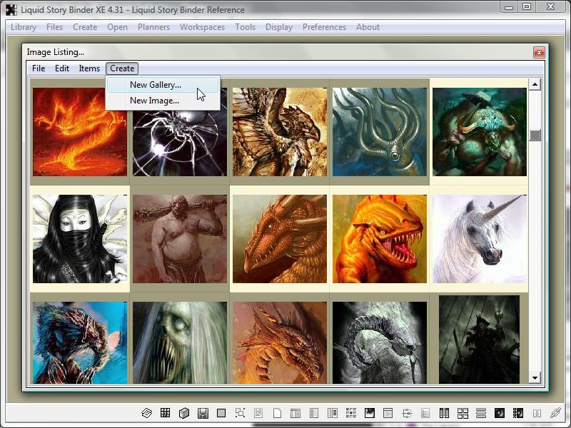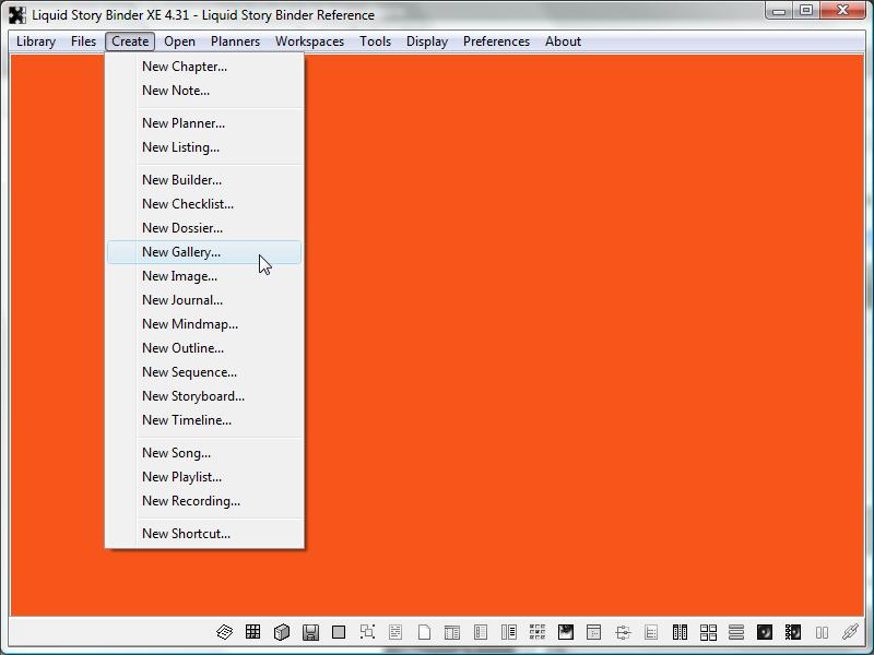 To create a new Gallery, choose 'New Gallery' from the 'Create' menu.
