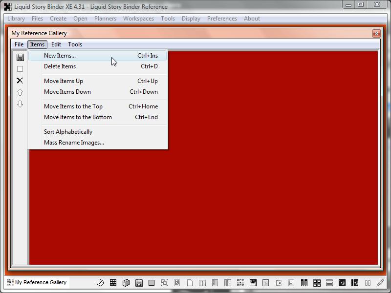 Choose 'New Items' from the 'Items' menu to add images to your custom gallery.