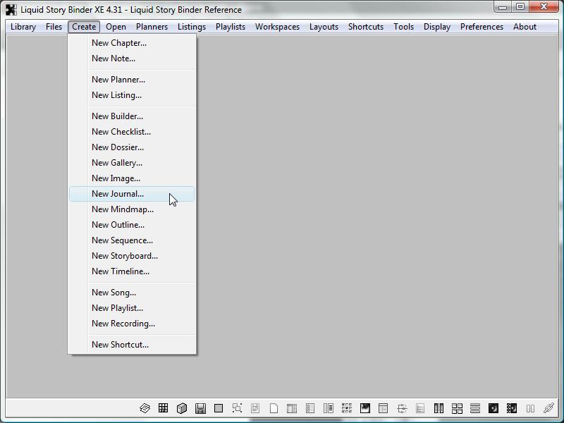 To create a new Journal, choose 'New Journal' from the main 'Create' menu.