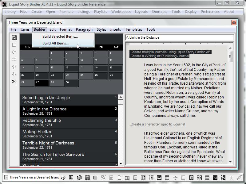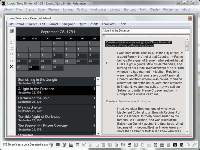 Liquid Story Binder XE allows you to create multiple Journals. Start a daily writing journal, or go back into the past to tell the story of a fictional character.