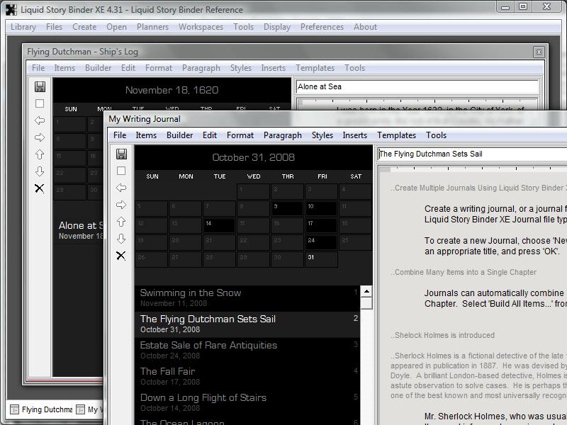 Create a writing journal, or a journal for each one of your characters. Use the Liquid Story Binder XE Journal file type to write historical novels, day by day.
