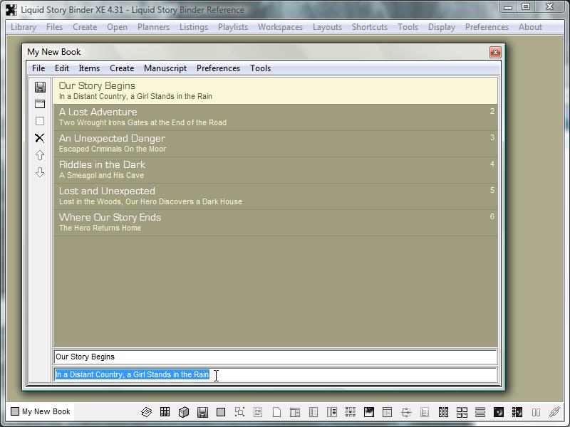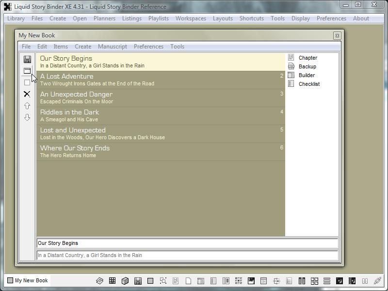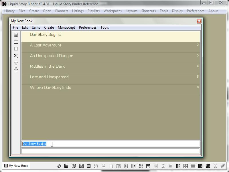 Begin by entering new Chapter titles for your novel using the topmost edit box located at the base of the Planner window.