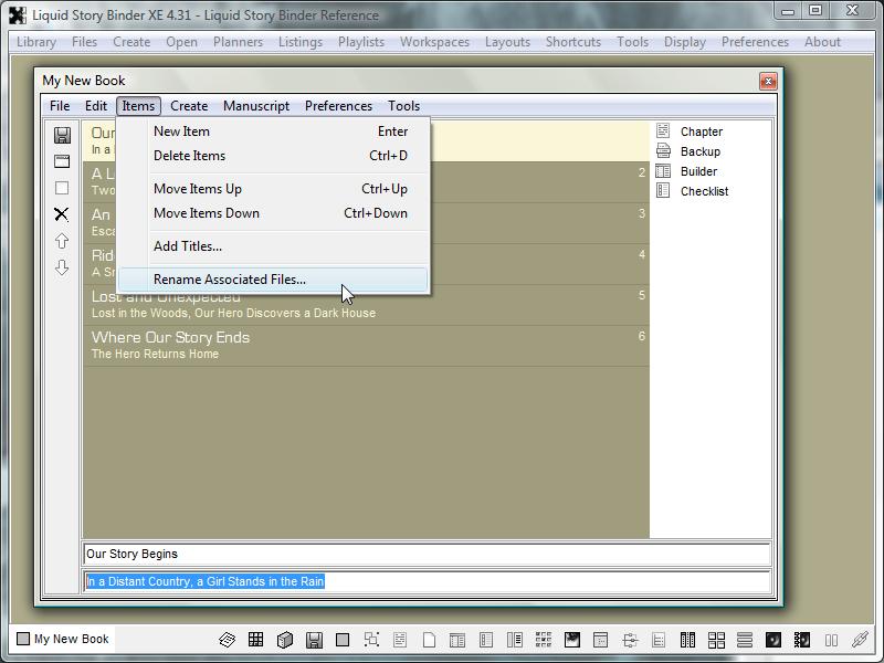 Use the Planner's 'Mass Rename' tool to rename your Chapters. This ensures that all like-named files, including the Chapter's Backup file, are named alongside their parent Chapter.