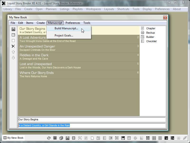 Chapters listed in the Planner are combined and formatted automatically using the 'Manuscript Builder'.