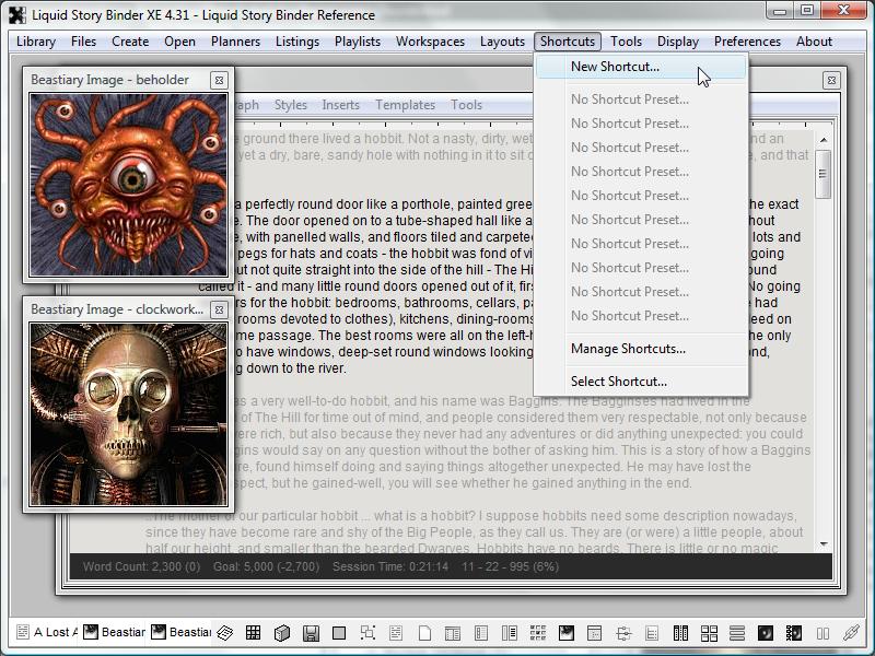 Liquid Story Binder Shortcuts allow to quickly access external programs and documents, aiding in your creative process.